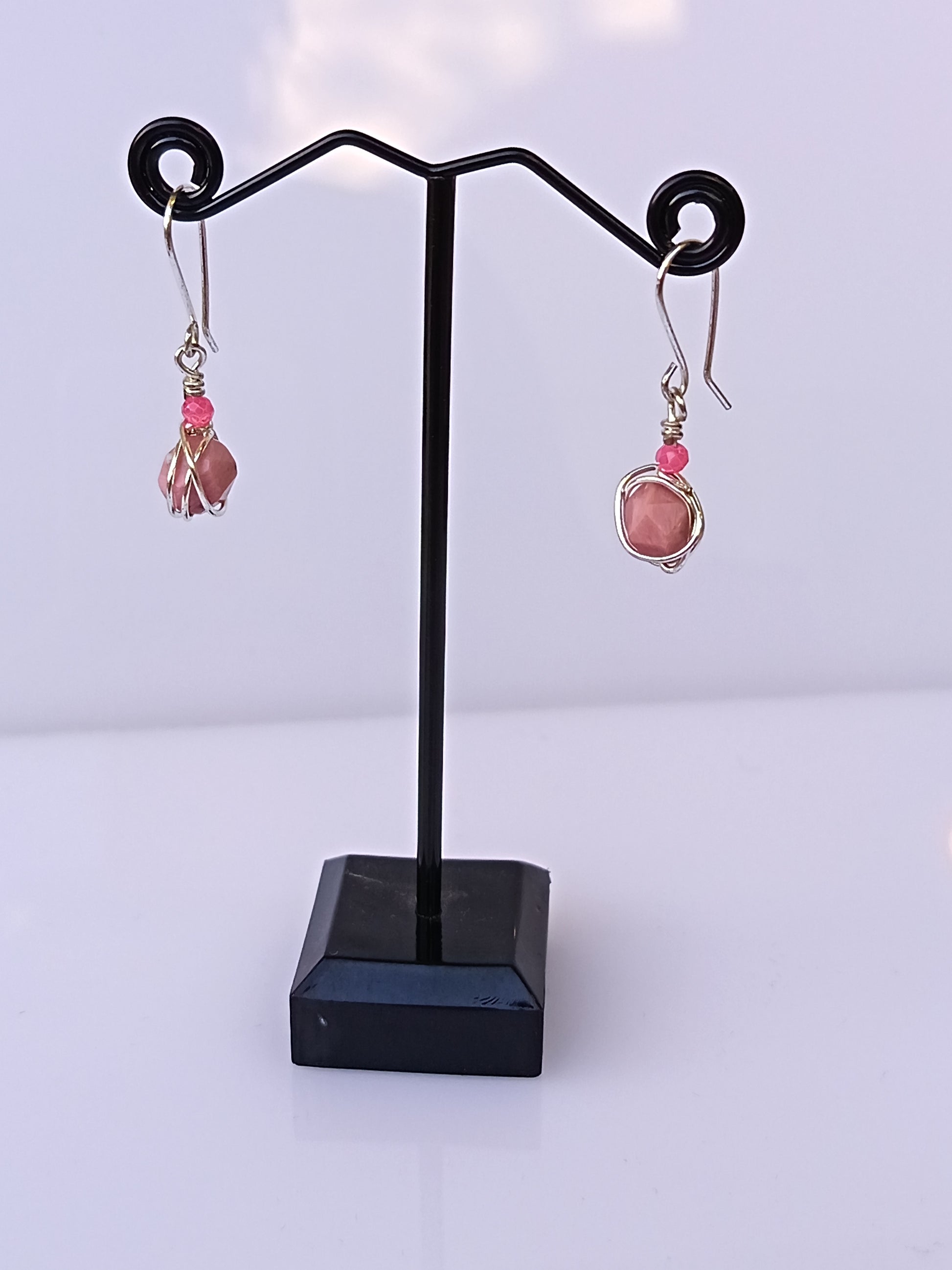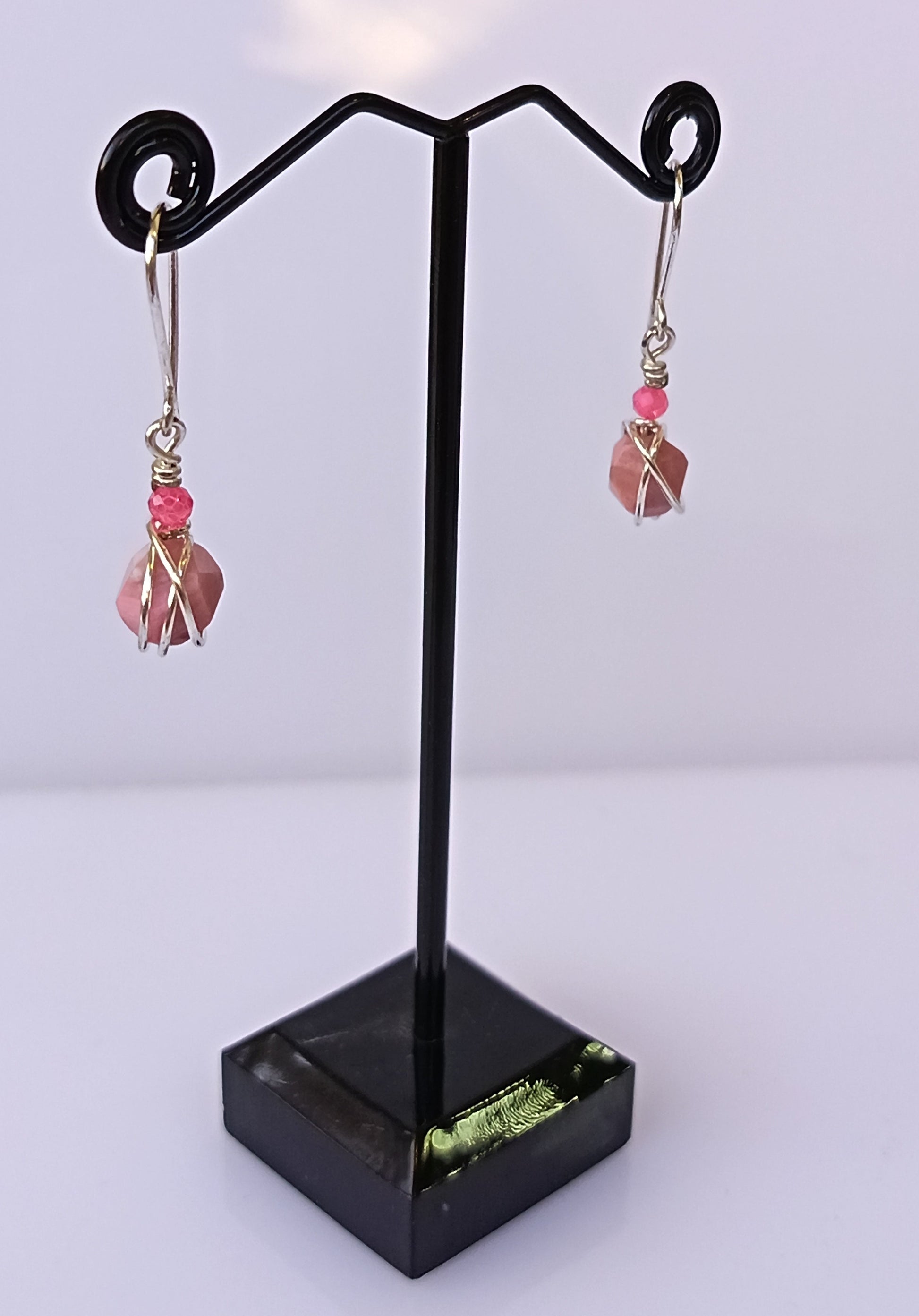 Piedra rodonita con alambre de baño de plata