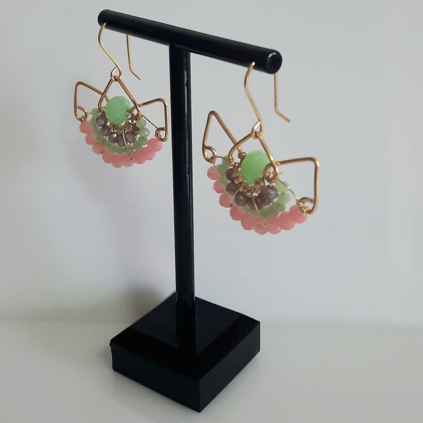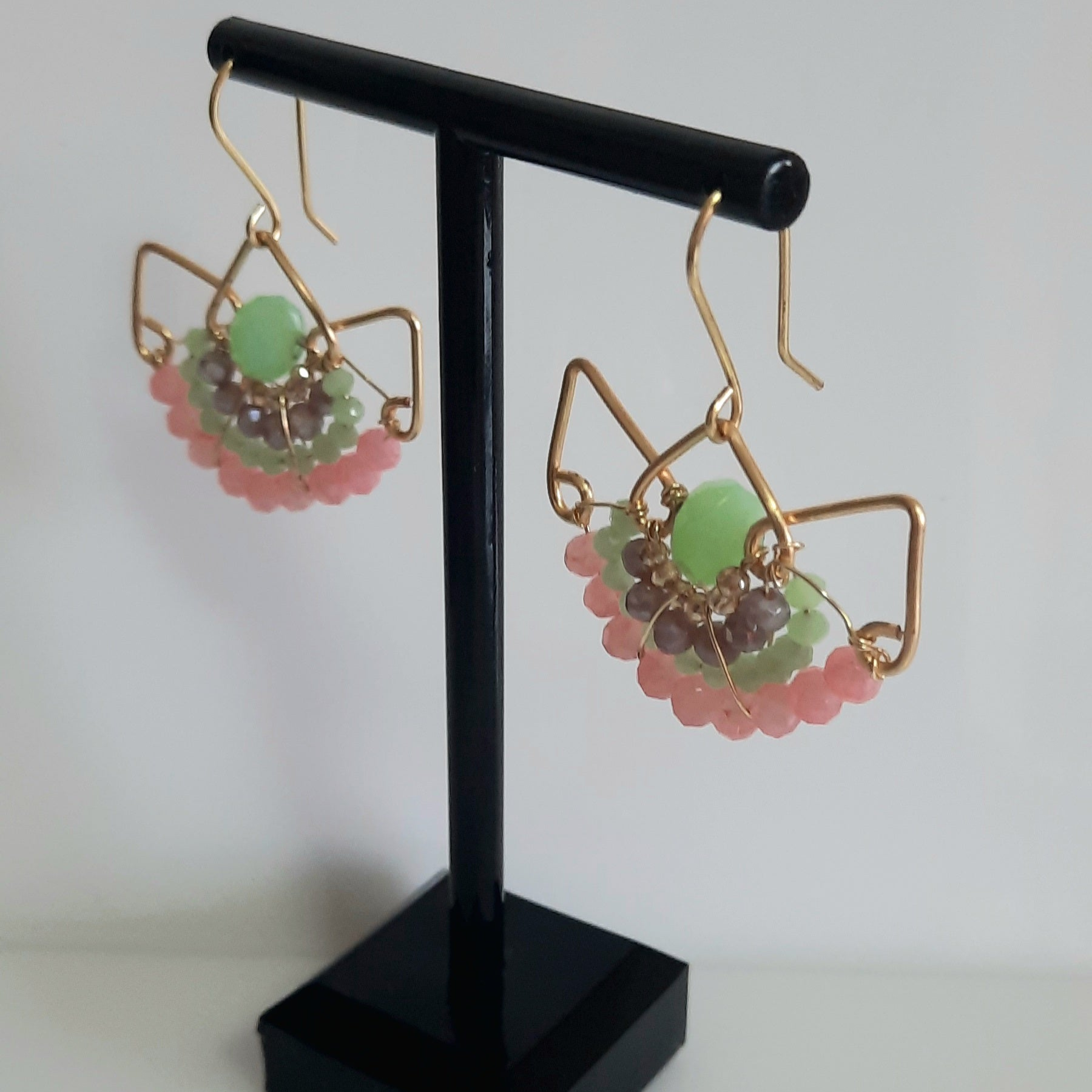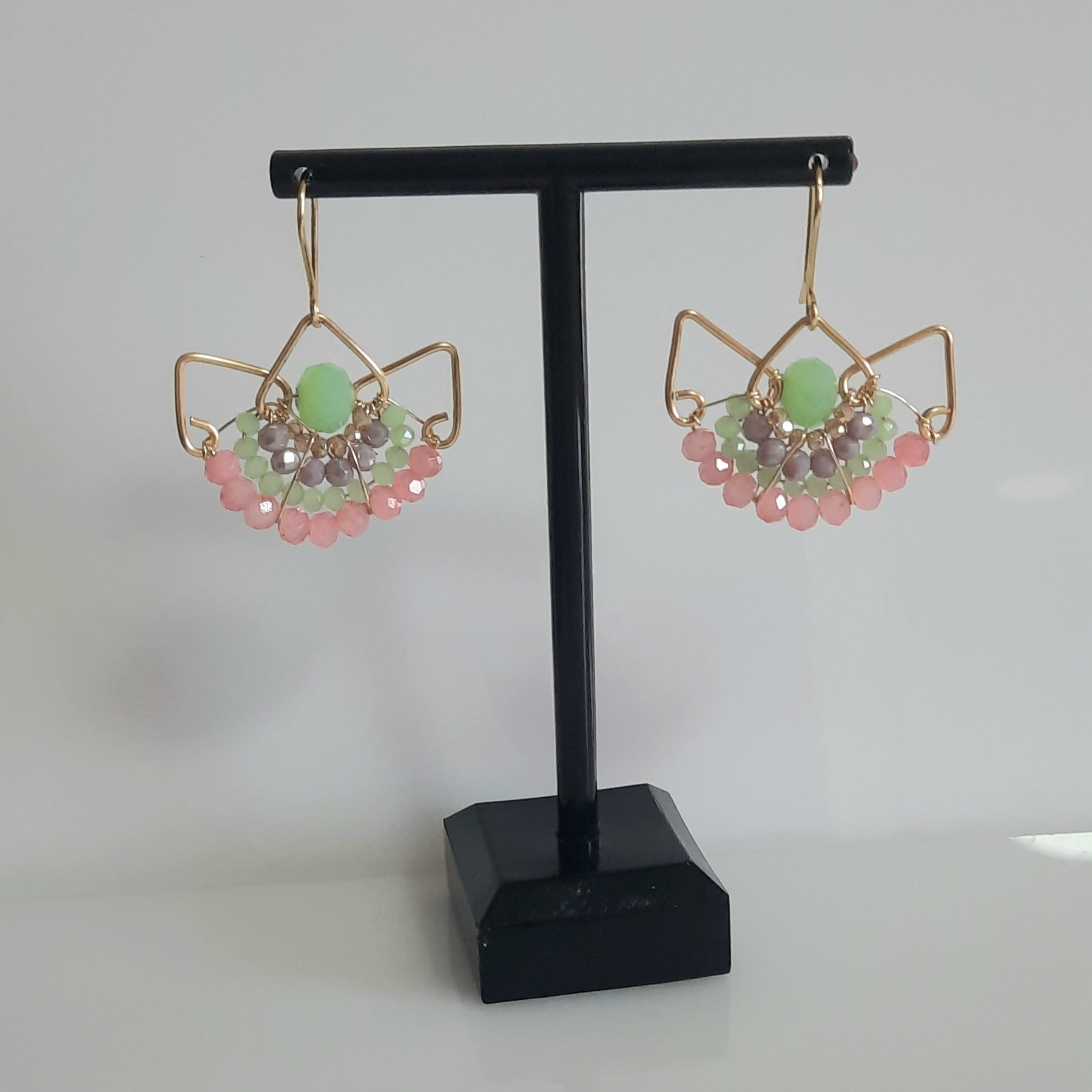 Alambre con baño de oro y cristales checos en colores Verde, lila y rosado