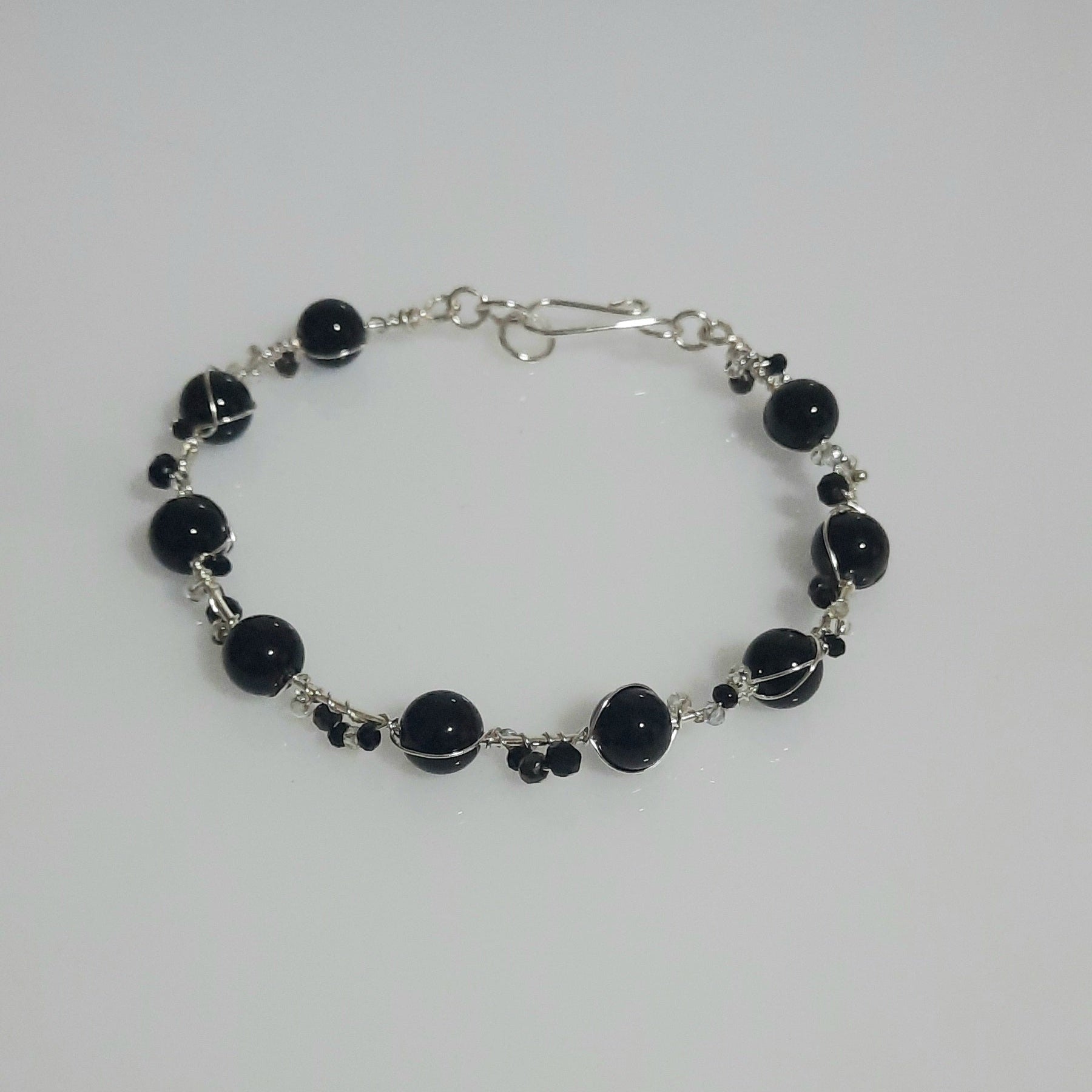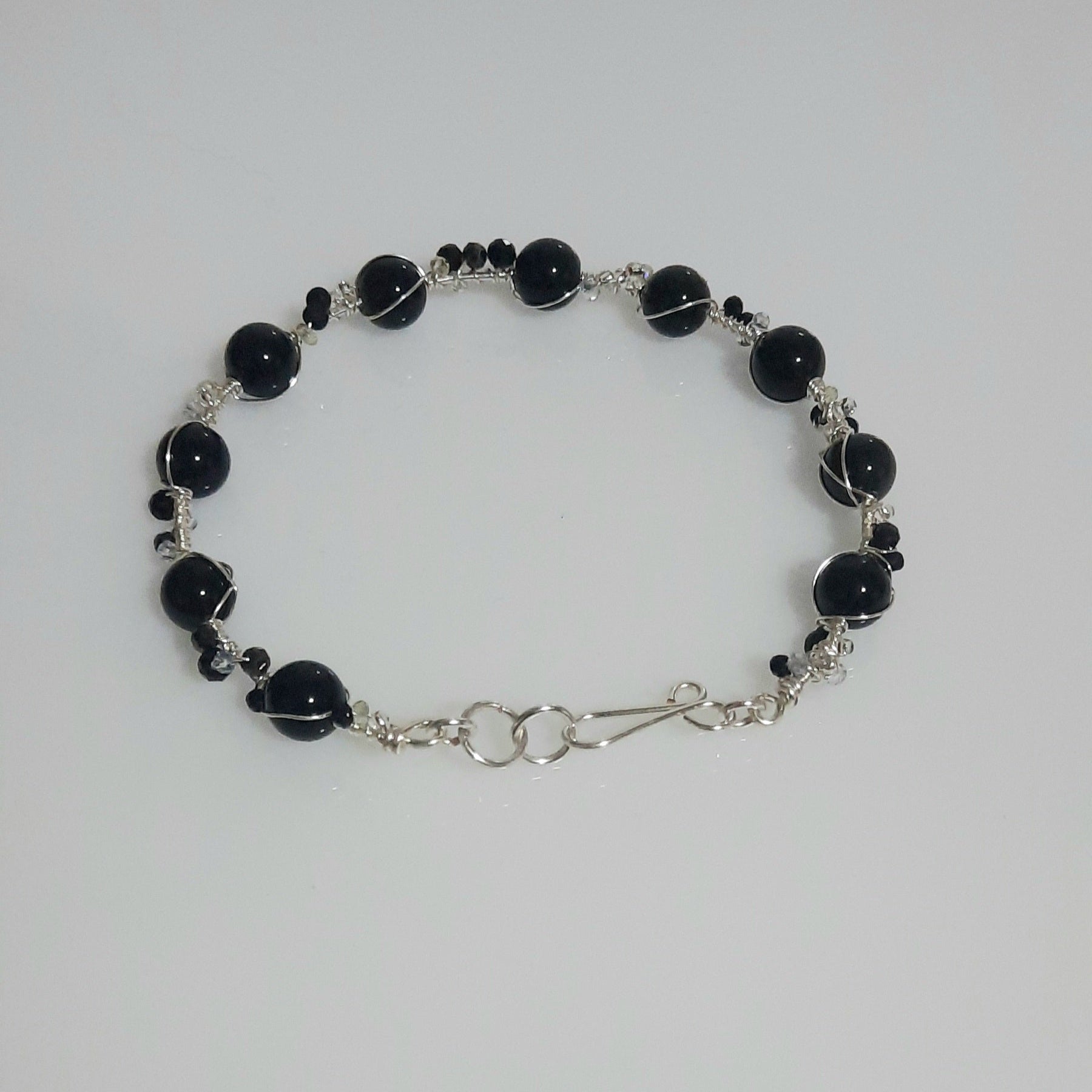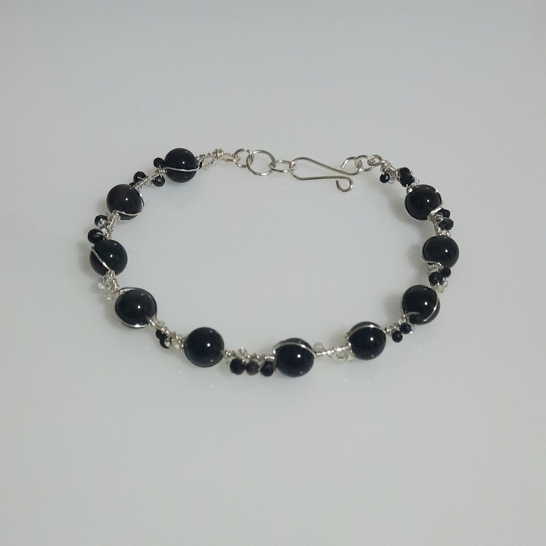 Con piedras naturales de ónix y alambre de baño de plata