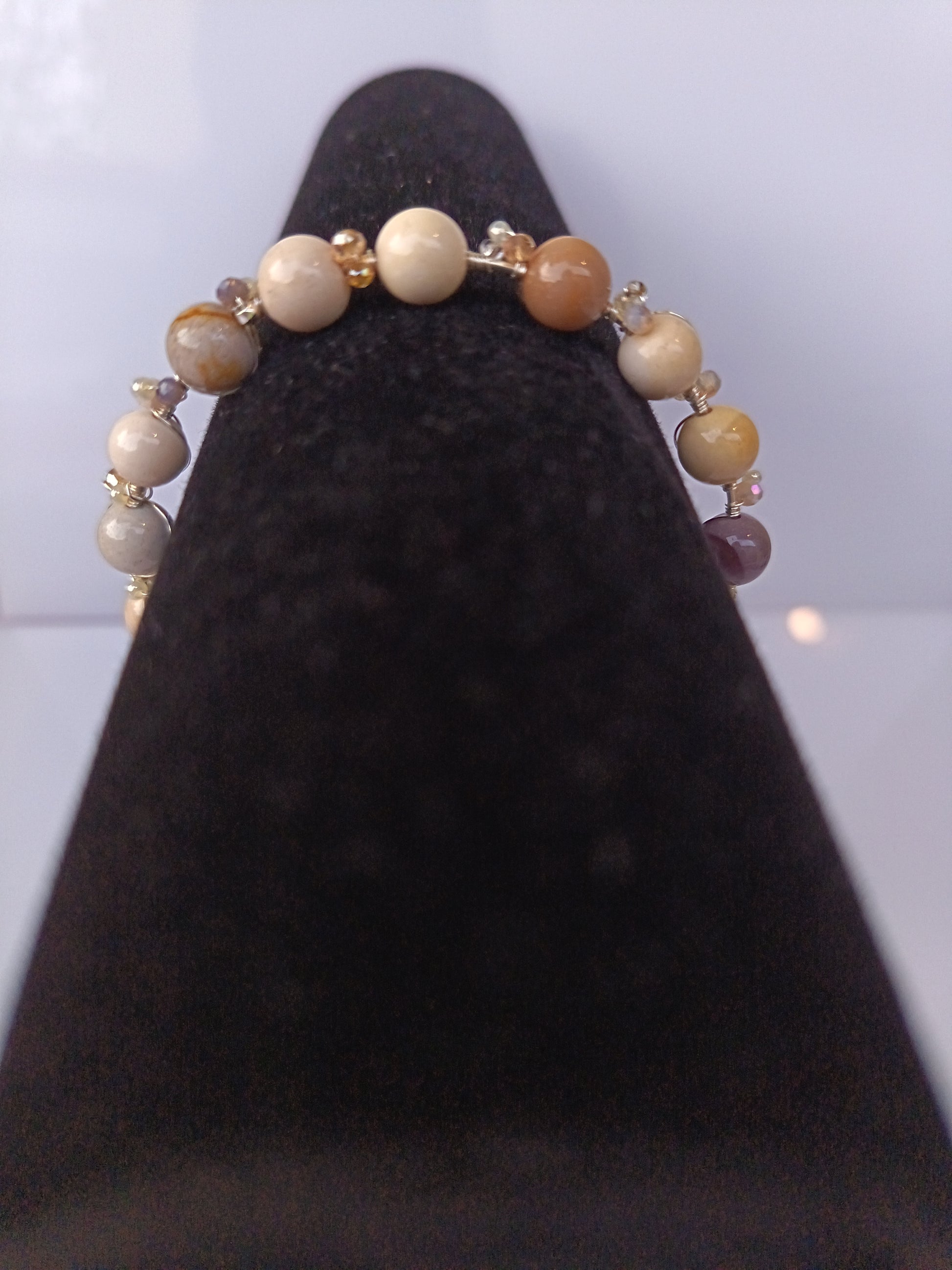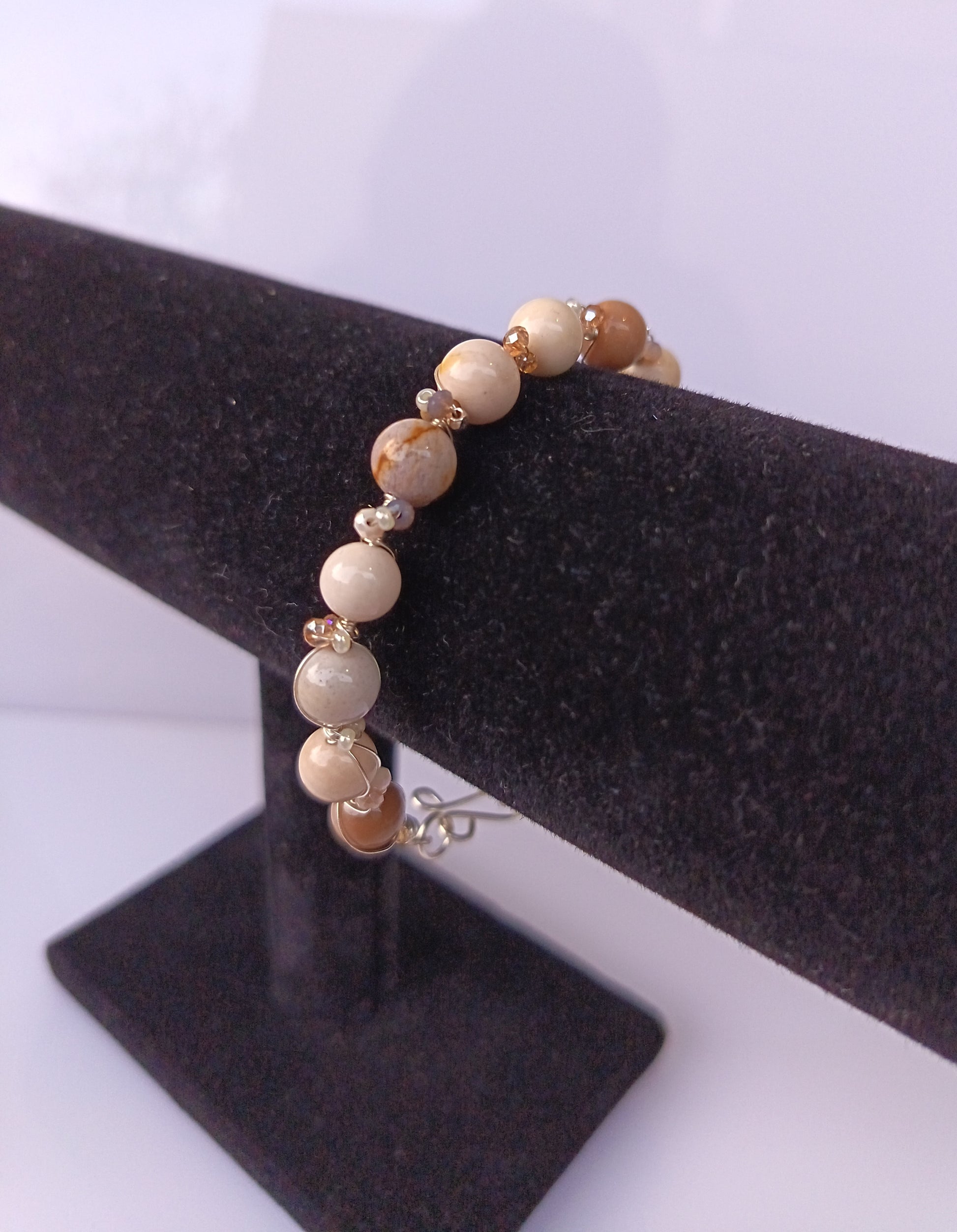 Pulsera de piedra Jaspe Mokaita con alambre de baño de oro
