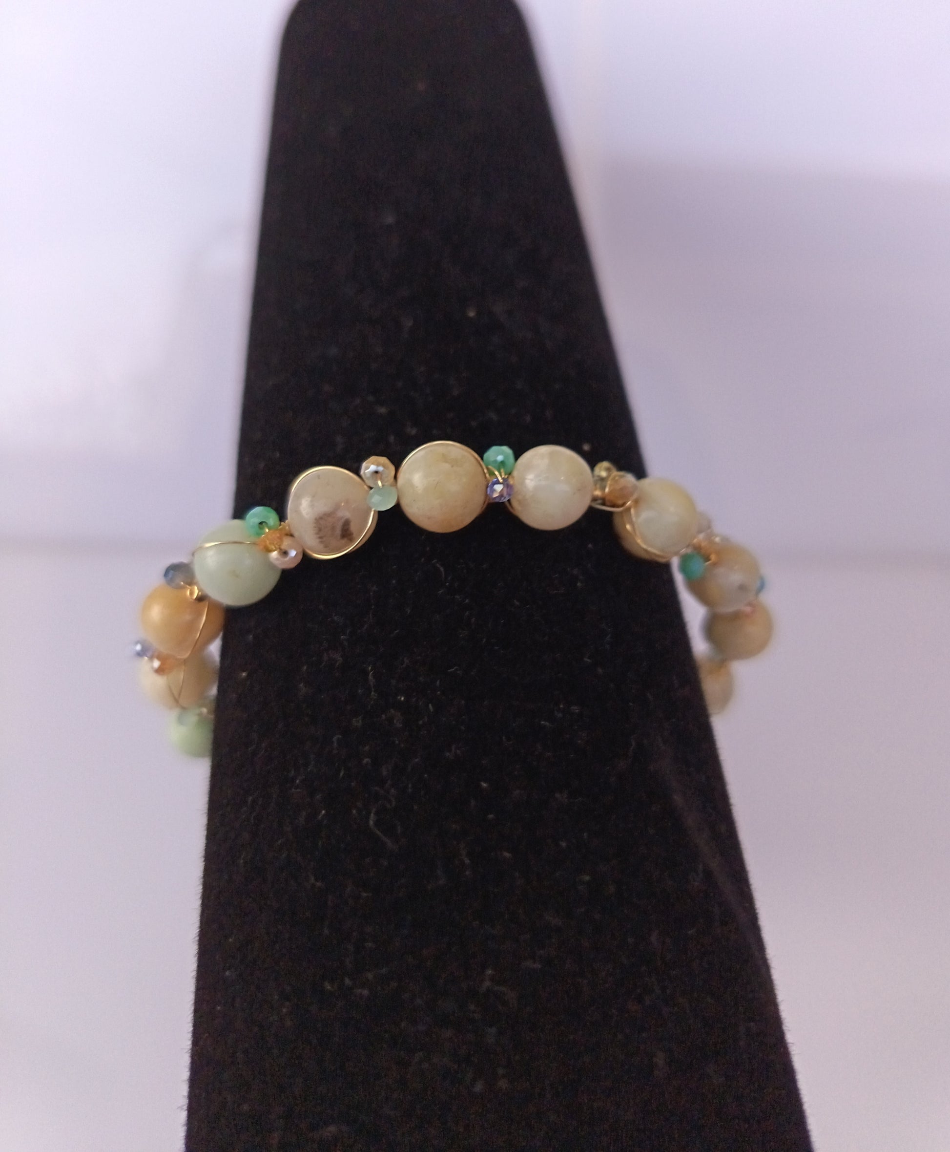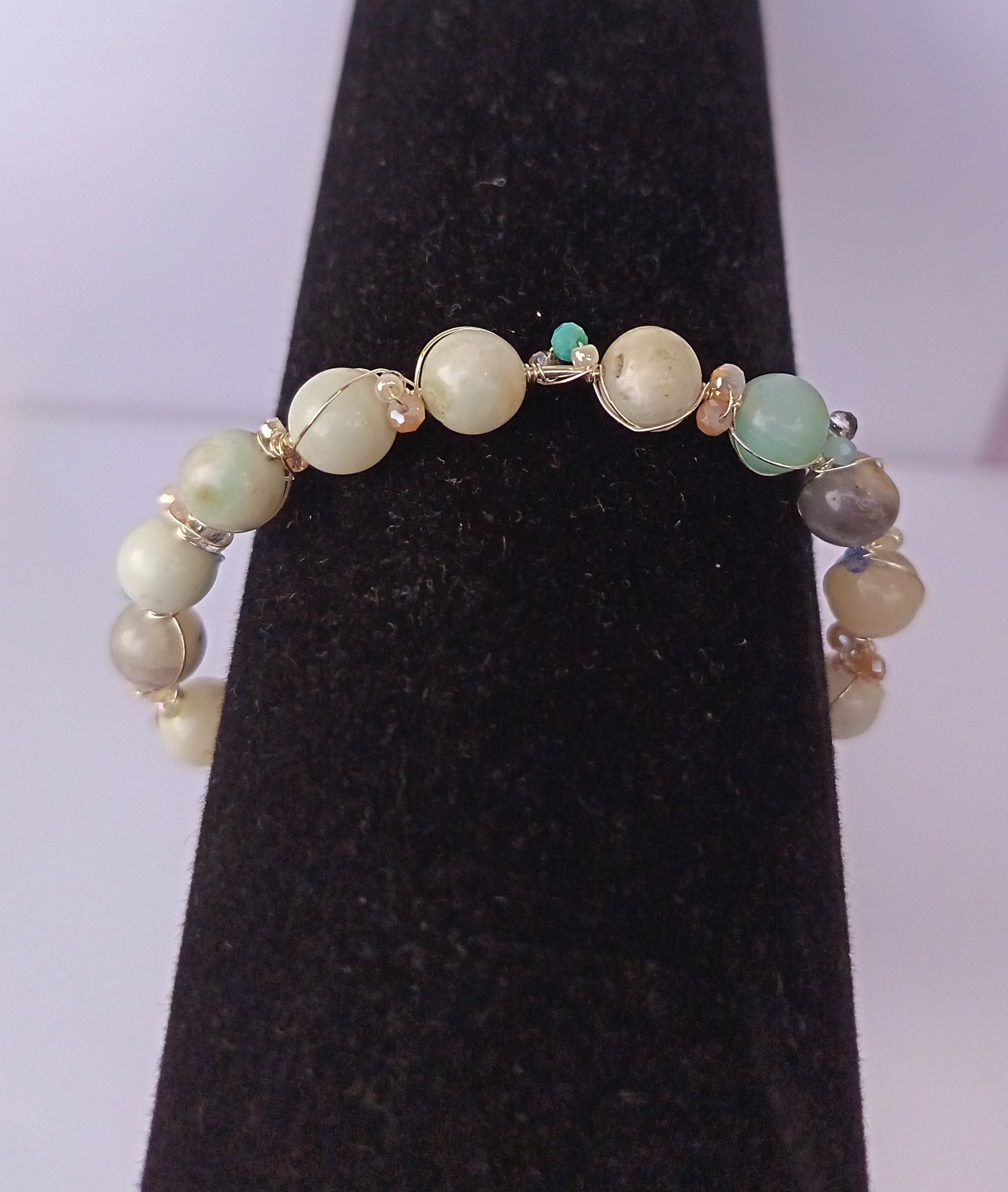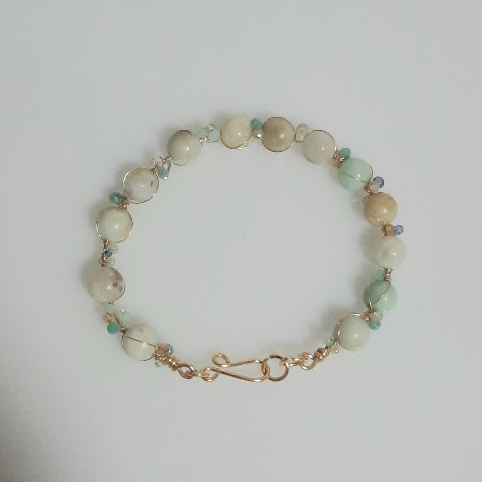 Pulsera con piedras naturales de amazonita y alambre de baño de plata y baño de oro