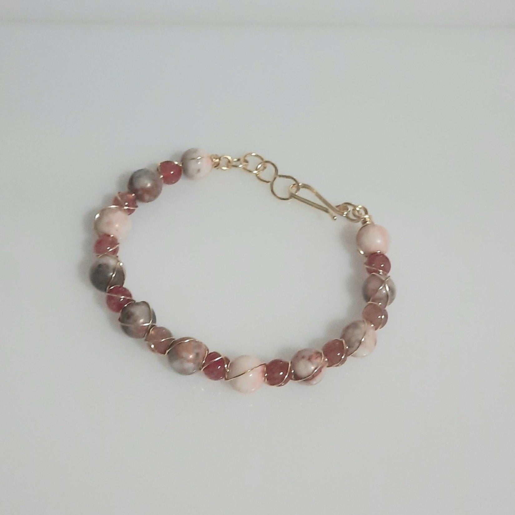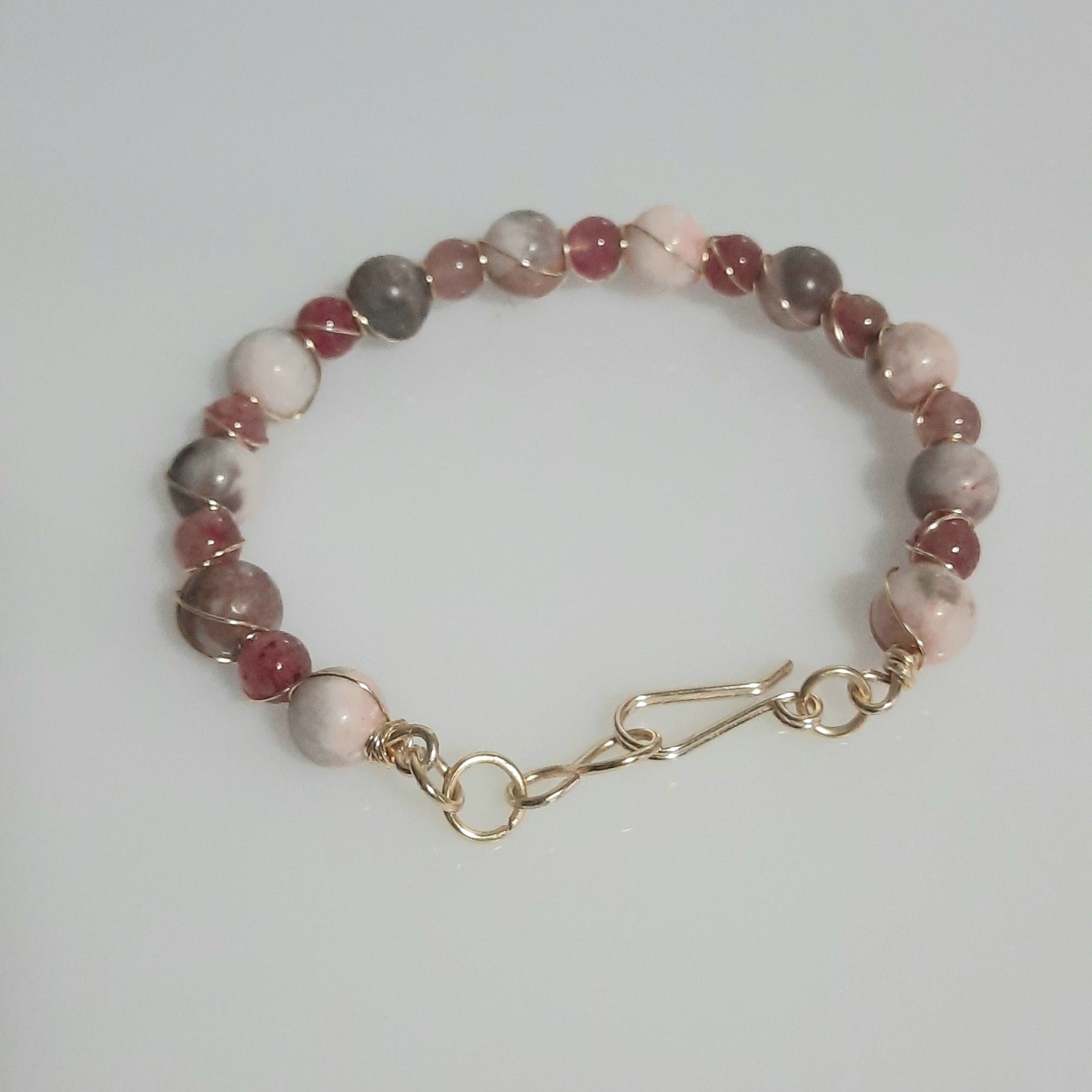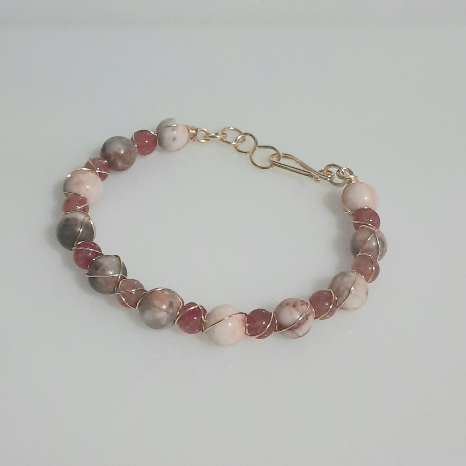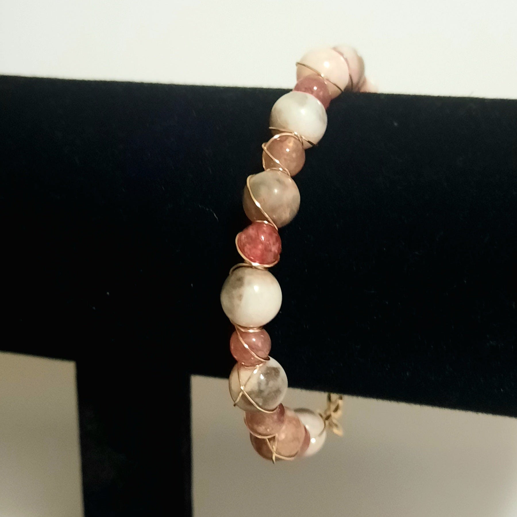 Piedras Jaspe Flor de ciruelo y jade frutilla con alambre de baño de oro
